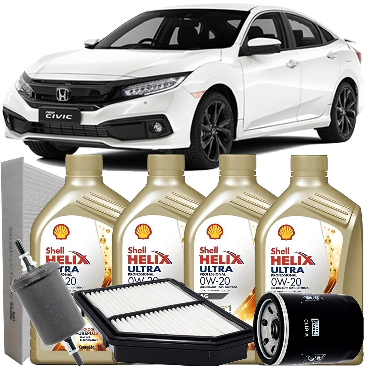 Kit Revisao Oleo 0W20 E Filtros Civic G10 2.0 2016 2017 2018 2019 2020 2021