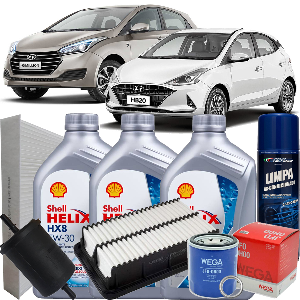 03 Litros de óleo Shell HX8 5W30 100% Sintético (10.000 Km ou 12 meses)