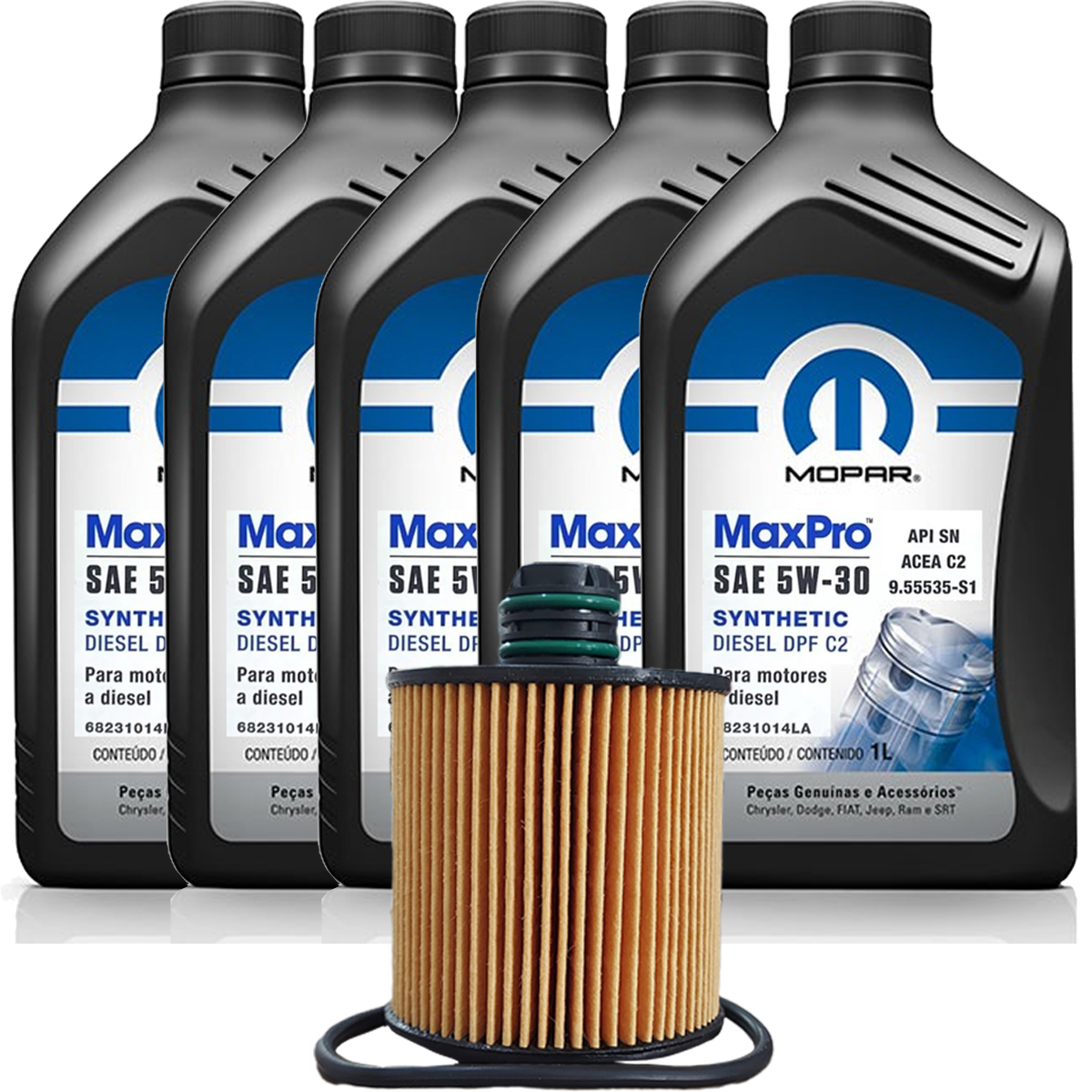 Kit Revisão Troca De Óleo 5w30 Mopar MaxPro 100% Sintético Toro Renegade Compass 2.0 Turbo Diesel